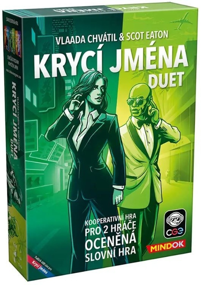 Jeden z našich největších bestsellerů Krycí jména Duet přichází v novém kabátu. Hra má nejen nový design, ale je vylepšena i uvnitř krabice. Jednotlivá slova prošla přísnou kontrolou a některá hru opustila a byla nahrazena novými kartami. Ve hře je proti původním edicím změněno asi 10% - 15% slov.