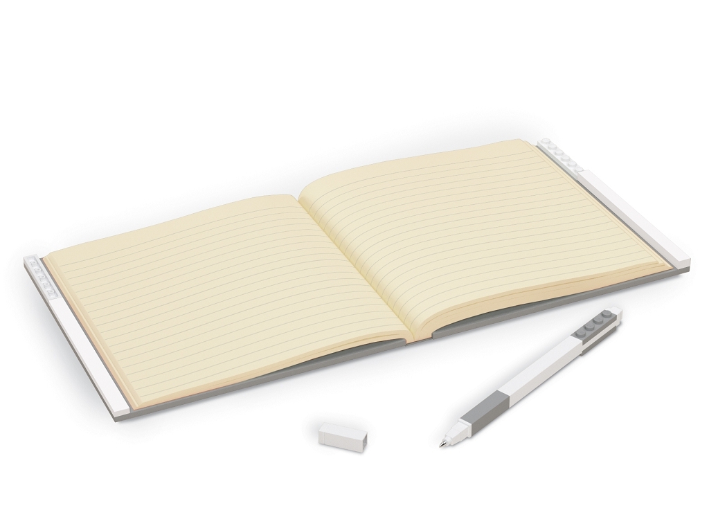 Nový LEGO zápisník - originální ze všech stran. Nechte se okouzlit reliéfní grafikou LEGO kostičky na přední i zadní straně zápisníku, přední i zadní předsádkou s retro designem a unikátním zavíracím mechanismem obsahujícím LEGO gelové pero.