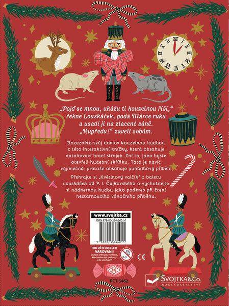 "Pojď se mnou, ukážu ti kouzelnou říši," řekne Louskáček, podá Klárce ruku a usadí ji na zlacené sáně. "Kupředu!" zavelí sobům... Rozezněte svůj domov kouzelnou hudbou z této interaktivní knížky, která obsahuje natahovací hrací strojek. Zní to, jako byste otevřeli hudební skříňku. Tato je navíc výjimečná, protože obsahuje pohádkový příběh! Přehrajte si "Květinový valčík" z baletu Louskáček od P. I. Čajkovského a vychutnejte si nádhernou hudbu jako podkres při čtení nestárnoucího vánočního příběhu.