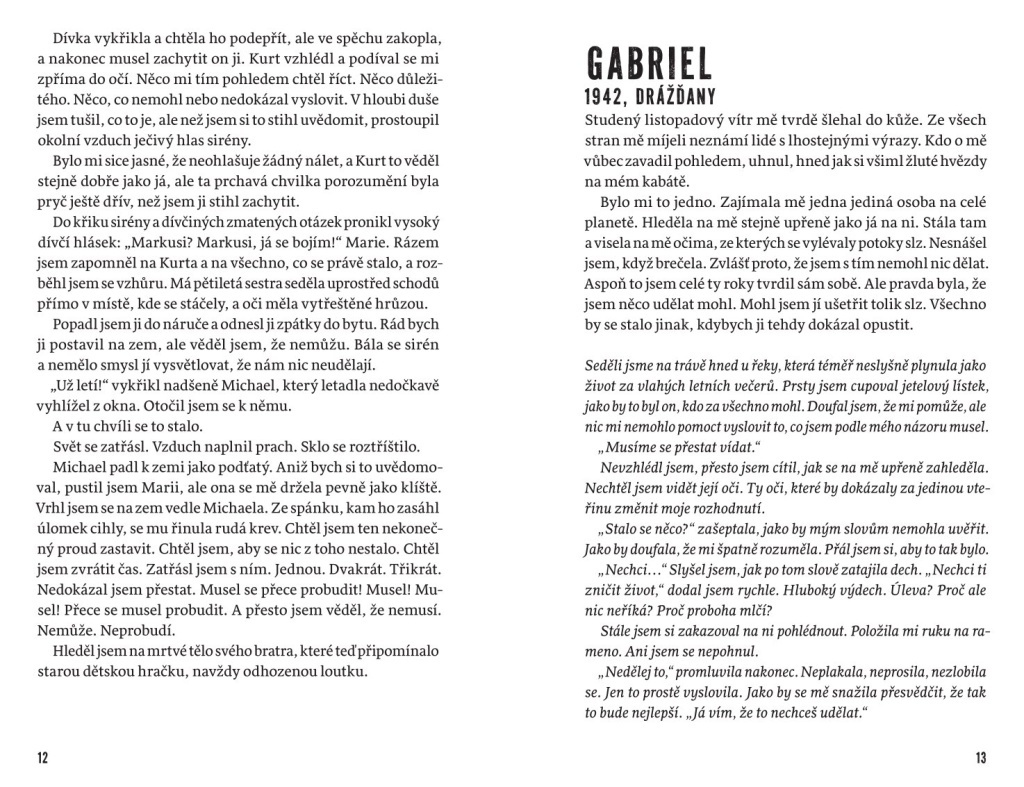 Markus by pro své blízké udělal vše. Historie mu to ale nedovolí. Hrůzy války skončily, na německého chlapce z Prahy ale čeká další zlo. Gabriel žije jako Žid v nacistickém Německu. A nakonec musí opustit i to nejdůležitější. Nathan tráví svůj život s dobrodružnými knihami. Stane se ale součástí příběhu, který se rychle mění v horor. Hannelore obětovala lásce vše. A může taky vše ztratit. Lola dospívá ve zničených Drážďanech s tíhou tajemství, které se nikdy neměla dozvědět.