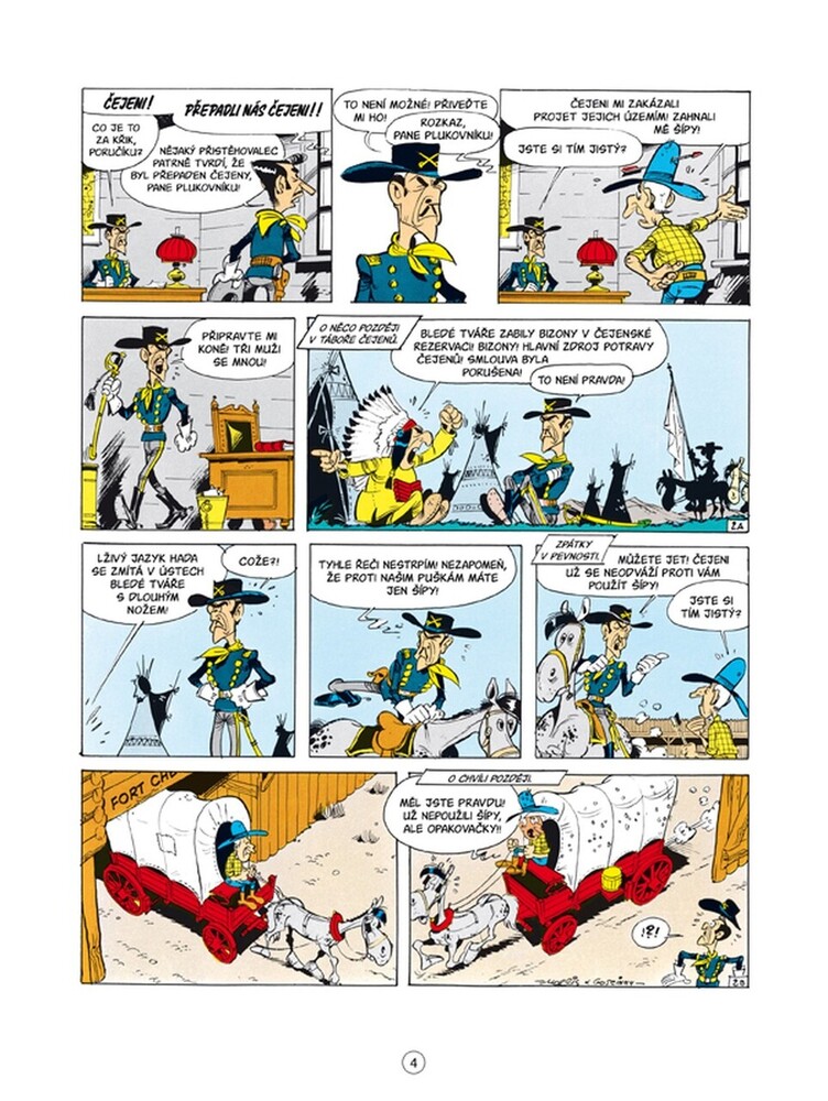 Tentokrát je mise Luckyho Lukea velice delikátní. Musí se vypořádat s Čejeny, kteří obviňují bledé tváře ze zabíjení bizonů v jejich rezervaci, a to by mohlo vést k porušení uzavřeného příměří. Lucky Luke přijíždí do Fort Cheyenne jako zvěd, aby zjistil, kdo bizony zabíjí, a pomohl plukovníkovi ...