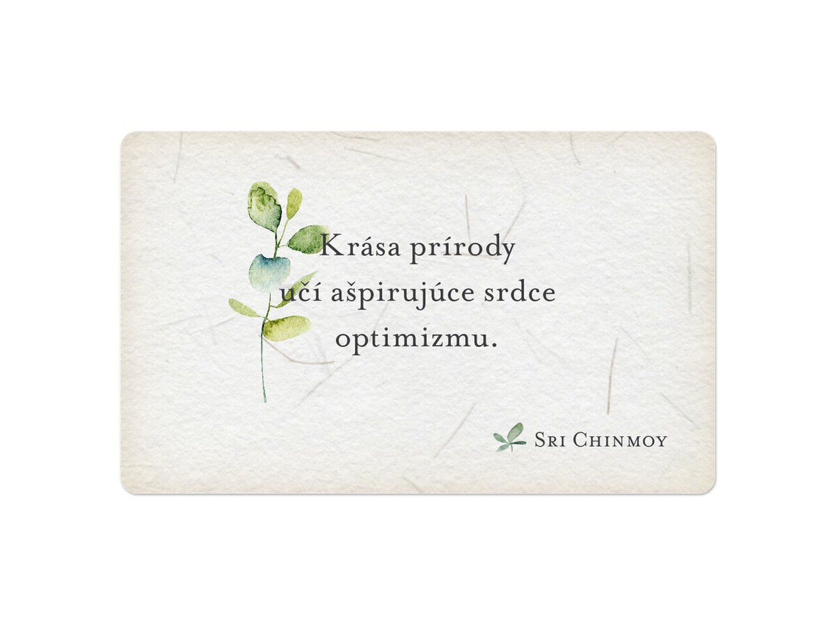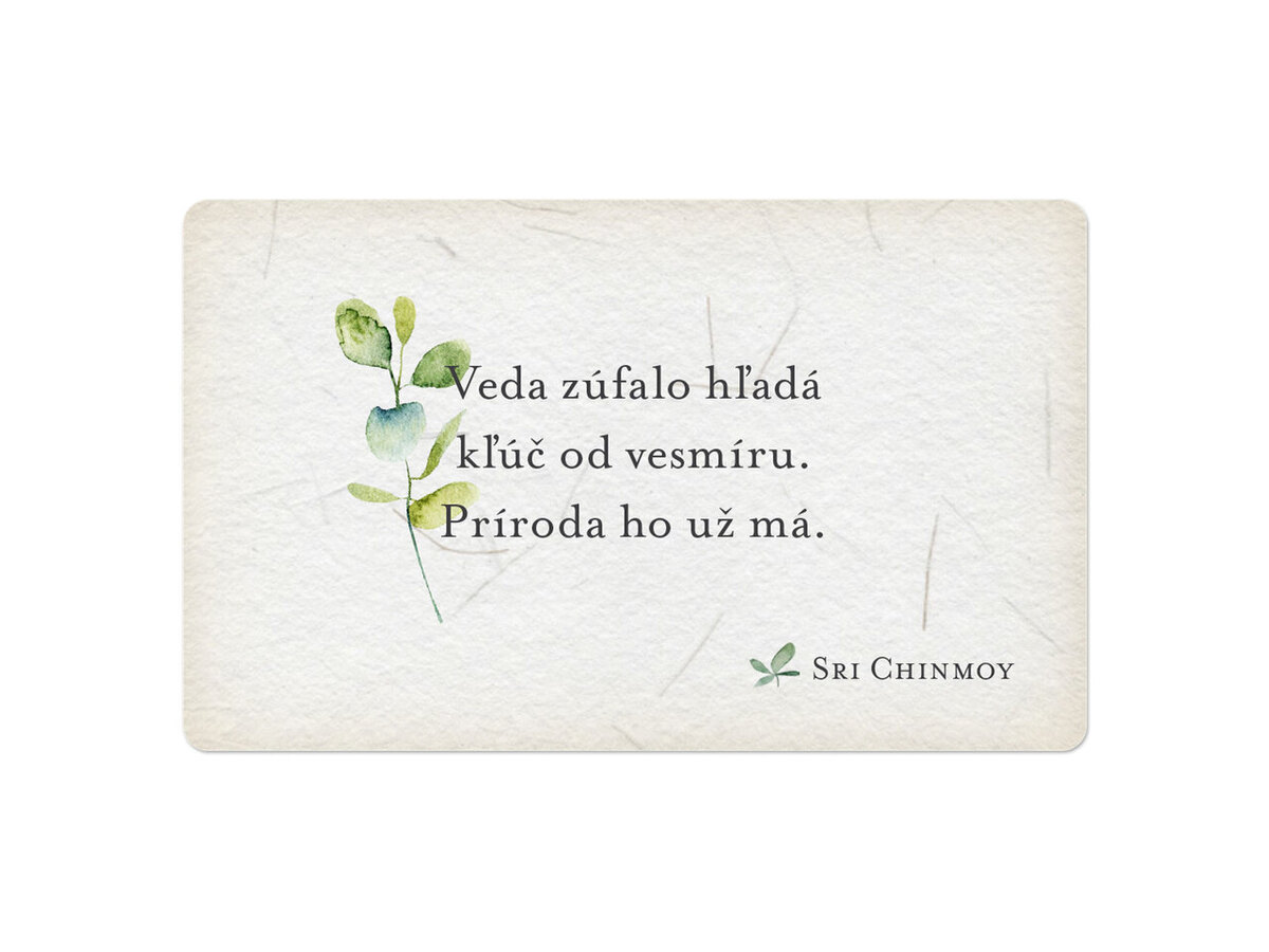 Príroda nás môže mnohému naučit – pokiaľ jej to dovolíme. Učí nás trpezlivosti, tolerancii, láske, pokore a sebadávaniu. Ale najmä harmónii a jednote. Táto séria 55 inšpirujících aforizmov z pera Sri Chinmoya, s krásnými ilustráciami Shatadal Pötzsch, prináša múdrosť, krásu a dotyk všeobjímajúceho srdca Matky Zeme.