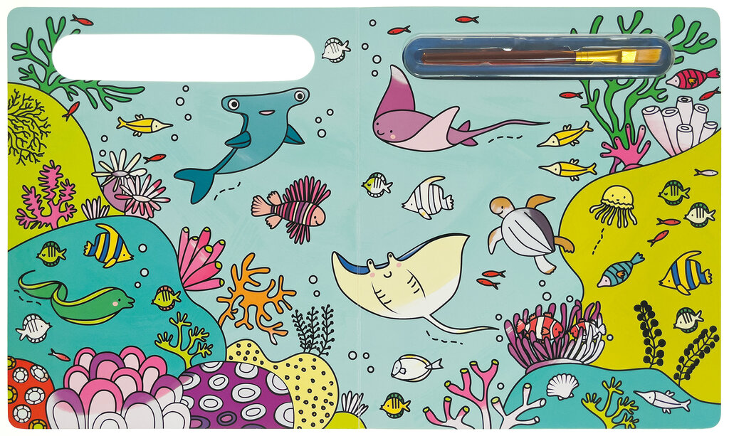 Knižka s pevnými stránkami je plná obrázkov s tematikou mora a morských živočíchov, ktoré sú sčasti farebné. Biele časti sa dajú veľmi ľahko vyfarbiť - stačí namočiť do vody štetec, ktorý je súčasťou knihy, a farba sa ako zázrakom na bielom podklade objaví. To však nie je všetko! Vymaľovaný obrázok ako kúzlom zmizne, a tak ho dieťa môže vymaľovávať stále dookola. Skontrolujte, či dieťa drží štetec správne. S touto knižkou si bude precvičovať jemné motorické schopnosti a koordináciu oka a ruky.