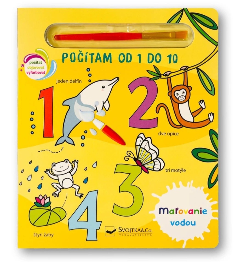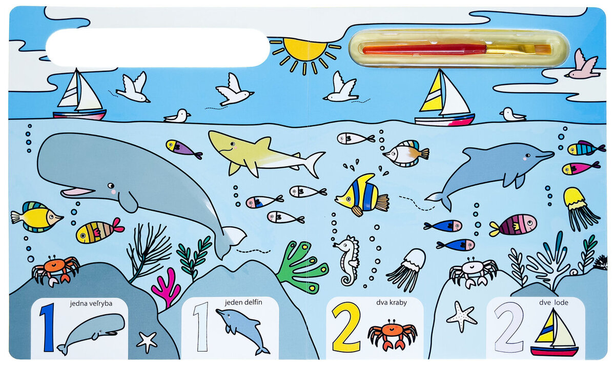 Knižka s pevnými stránkami je plná obrázkov z prírody, ktoré sú čiastočne farebné. Biele časti sa dajú veľmi ľahko vyfarbiť - stačí namočiť do vody štetec, ktorý je súčasťou knihy, a farba sa ako zázrakom na bielom podklade objaví. Ale to nie je všetko! Vymaľovaný obrázok ako kúzlom zmizne, a tak ho dieťa môže vymaľúvať stále dookola. Skontrolujte, či dieťa drží štetec správne. Súčasne si dieťa môže osvojiť spoznávanie čísel od 1 do 10 a obrázky hľadať aj spočítať! S touto knižkou si bude precvičovať jemné motorické schopnosti, koordináciu oka a ruky a základy počítania.