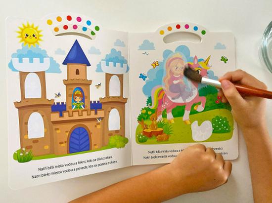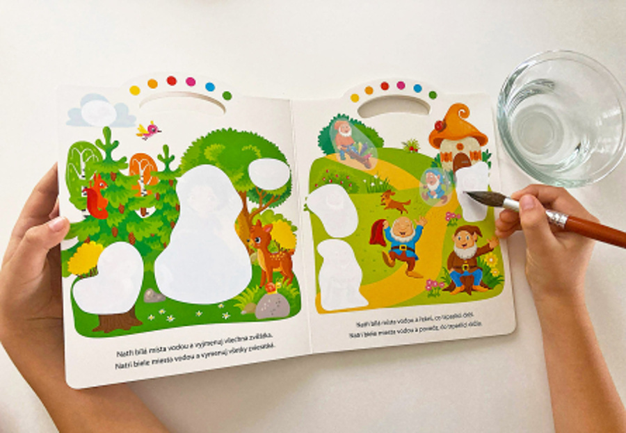 Kouzelné malování pro děti. K vybarvení bílých obrázků stačí pouze štětec a pár kapek vody. Po zaschnutí můžete obrázek vymalovat znovu.