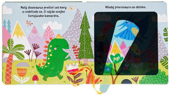 Priprav sa zažiť poriadne dobrodružstvo! Malý dinosaurus má veľa kamarátov a rozhodol sa, že ich dnes všetkých navštívi! Kam sa však všetci schovali? Vezmi si kúzelnú baterku a pomôž malému dinosaurovi nájsť jeho kamarátov! Uži si veselú hru na schovávačku! Vďaka jeho kúzelnej baterke sa pred ním nikto neschová! Vlož baterku medzi stránku a tmavú fóliu a objav rôzne dinosaury v odlišných scenériách!