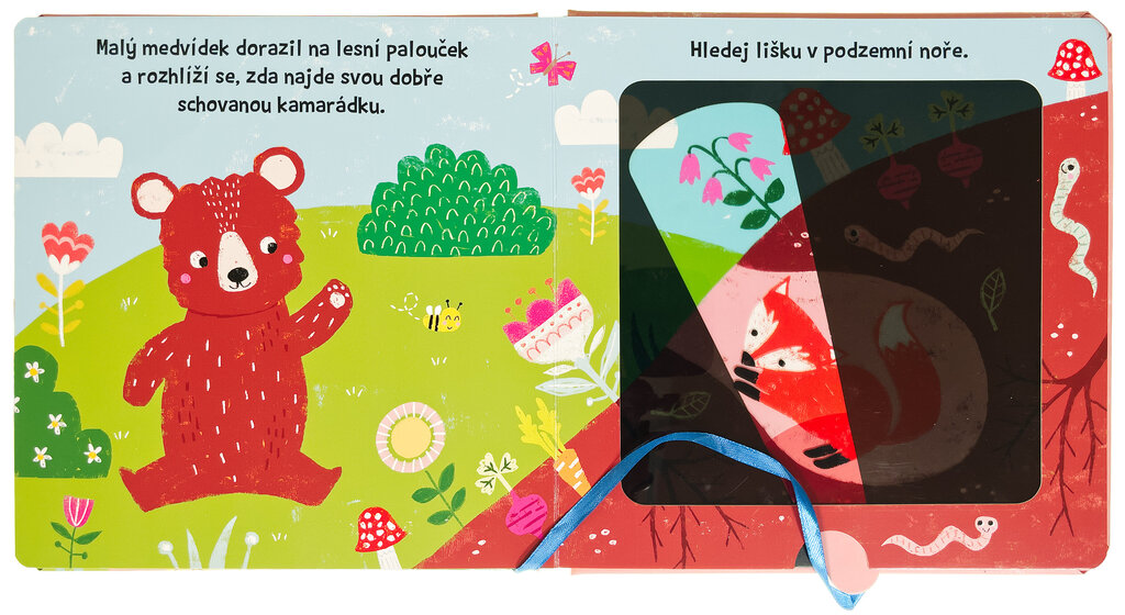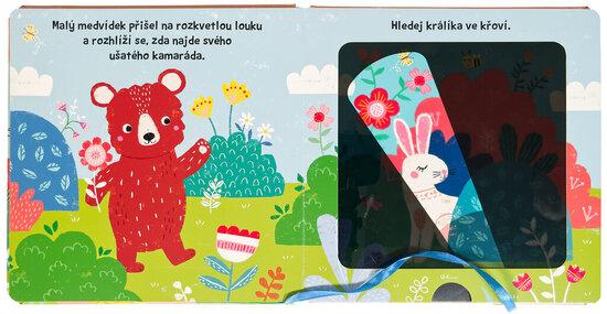 Připrav se zažít pořádné dobrodružství! Malý medvídek má spoustu kamarádů, které potkává každý den. Pojď je s ním všechny pozdravit. Kam se ale všichni schovali? Vezmi si kouzelnou baterku a pomoz malému medvídkovi najít jeho kamarády. Užij si veselou hru na schovávanou! Díky jeho kouzelné baterce se před ním nikdo neschová! Vlož baterku mezi stránku a tmavou folii a objev různá zvířata v odlišných scenériích.