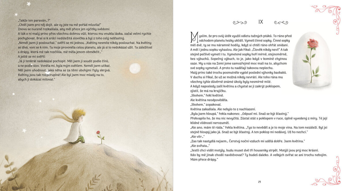 Malý princ od Antoina de Saint-Exupéryho je kouzelná pohádka pro děti i dospělé, která nás už několik desítek let učí dívat se na svět srdcem, ne jen očima. Prostřednictvím setkání s malým vesmírným chlapcem poznáváme důležitost přátelství, lásky a zodpovědnosti. Tento dojemný příběh o chlapci, který cestuje z planety na planetu, zkoumá smysl života a odhaluje hodnoty často skryté očím nás, dospělých. Tato nadčasová kniha by určitě neměla chybět v žádné rodinné knihovně.