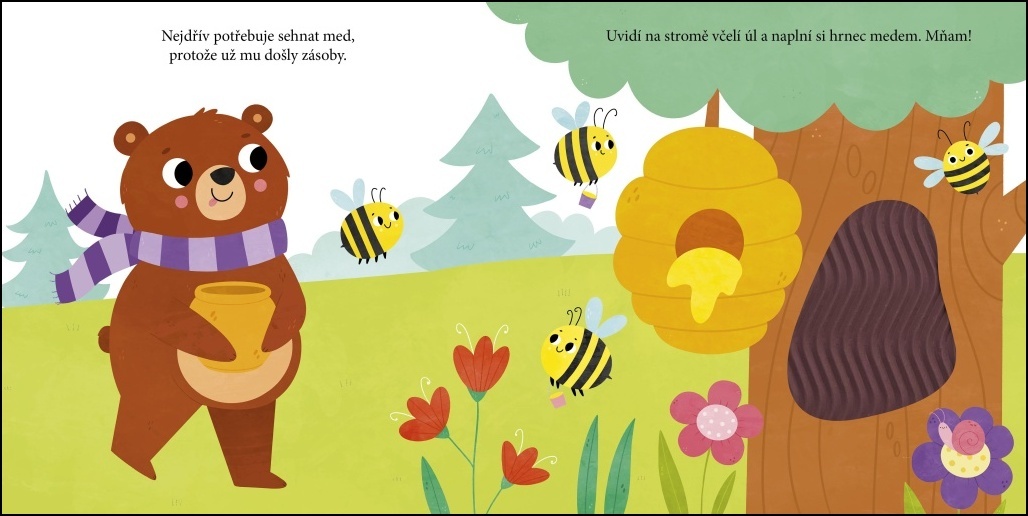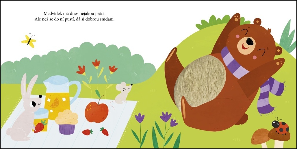 Seznamte se s medvídkem a prožijte s ním den v lese. Velké dotykové prvky dodávají zábavnému příběhu nový rozměr a zaujmou vašeho drobečka i při opakovaném čtení!