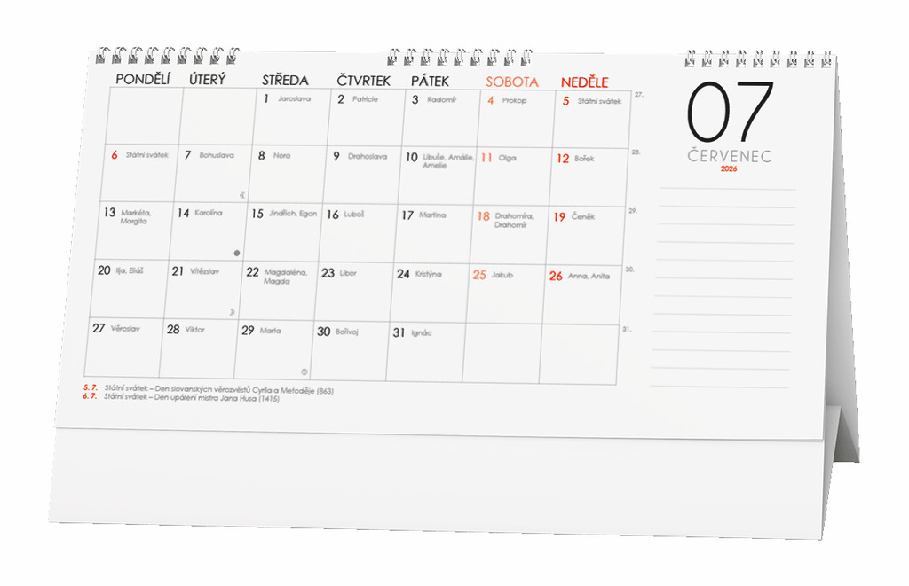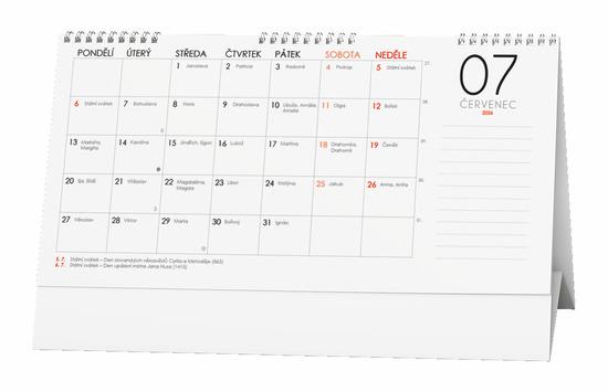 Výjimečný stolní kalendář s přehledným měsíčním kalendáriem a prostorem na poznámky.