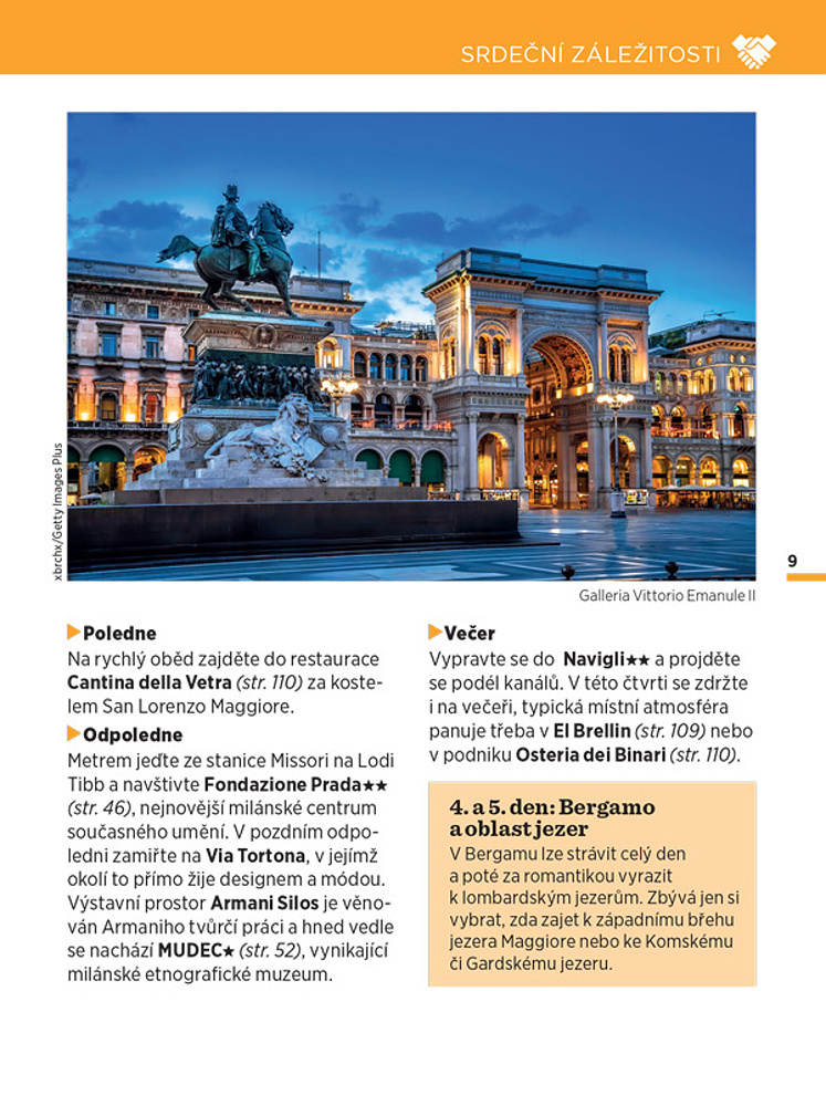 Milán je ekonomickým hlavním městem Itálie a zároveň světovým centrem módy a designu. Náš průvodce představuje ty nejzajímavější památky a zážitky. Nabídne vám i některé výlety do okolí, můžete navštívit například kláštery, Monzu, Bergamo nebo okolní jezera: Lago Maggiore, Lago d’Orta, Lago di Como nebo Lago di Garda.
