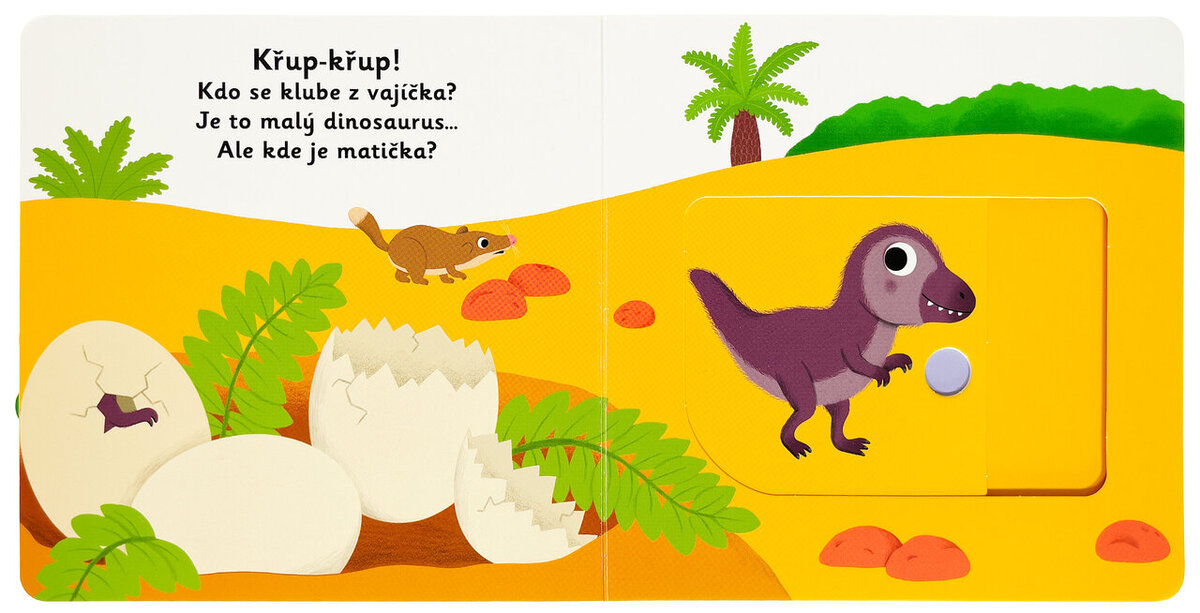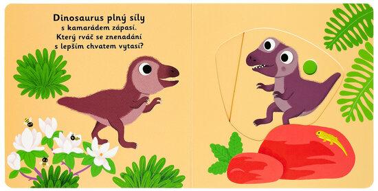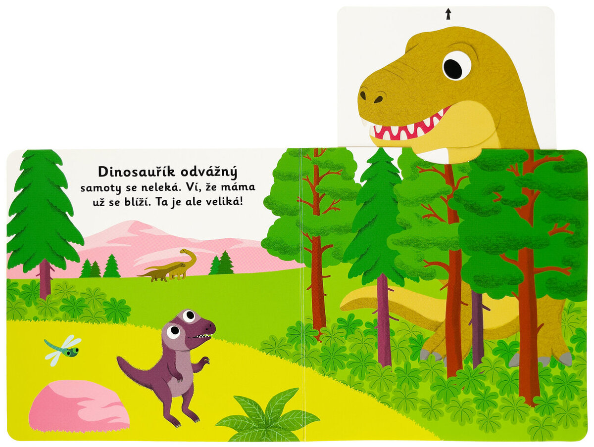 Dinosauřík odvážný samoty se neleká. Ví, že máma už se blíží. Ta je ale veliká! Poznejte příběh o malém dinosaurovi v tomto veršovaném leporelu s milými ilustracemi a pohyblivými prvky. Objevovat svět s tímto leporelem pro nejmenší děti od jednoho roku je tak zábavné! Pevné stránky s pohyblivými prvky procvičí i jemnou motoriku. Stačí