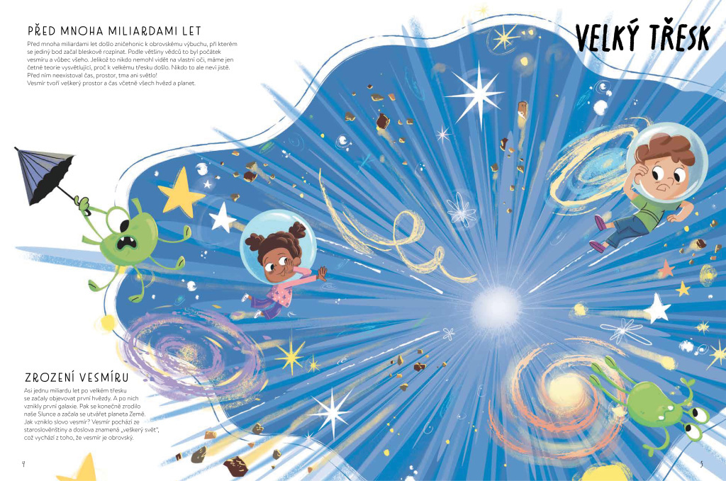 Nechte se ohromit touto knihou o vesmíru! Najdete v ní fascinující zajímavosti o těch nejúžasnějších tělesech noční oblohy. Hvězdy, planety, černé díry, galaxie… jedno je zajímavější než druhé. Připravte se na seznámení s tímto úžasným světem mimo naši planetu.