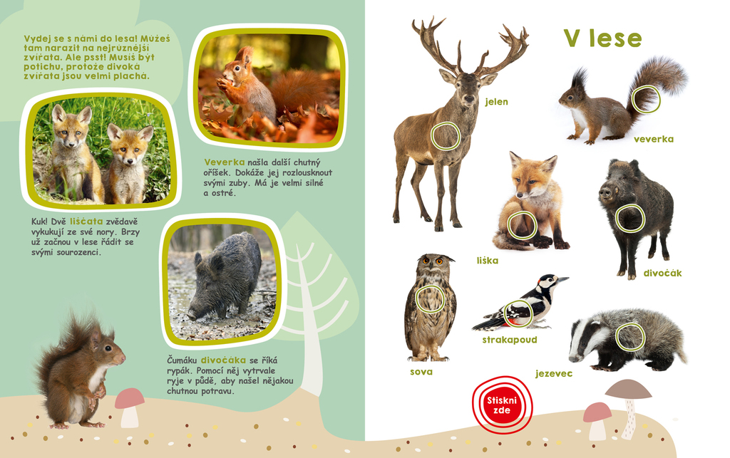 Veselé barevné fotografie, realistické zvuky a poznávání zvířat z celého světa nabízí spoustu zábavy!