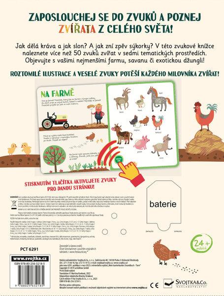 Jak dělá kráva a jak slon? A jak zní zpěv sýkorky? V této zvukové knížce naleznete více než 50 zvuků zvířat v sedmi tematických prostředích. Objevujte s vašimi nejmenšími farmu, savanu či exotickou džungli! Roztomilé ilustrace a veselé zvuky potěší každého milovníka zvířat!