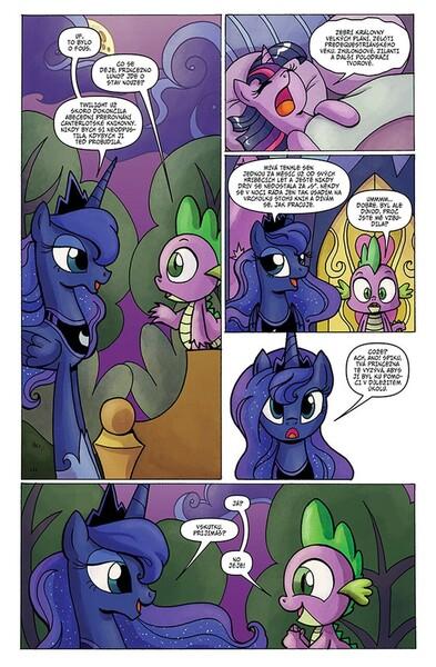 - Můj první komiks: My Little Pony - Poníci v akci Zbrusu nové příběhy inspirované hitovým televizním seriálem, ve kterém vždy vítězí síla přátelství! S plachou Fluttershy se vydáme na školní sraz, kde dojde k nečekanému klání! Pinkie Pie se pustí do pečení velmi důležitého dortu, Princezna Luna vyřeší zapeklitou detektivní záhadu a Twilight Sparkle se vypraví za řešením svého problému až do cizího mozku. Ne, s těmihle poníky se vážně nudit nebudete!