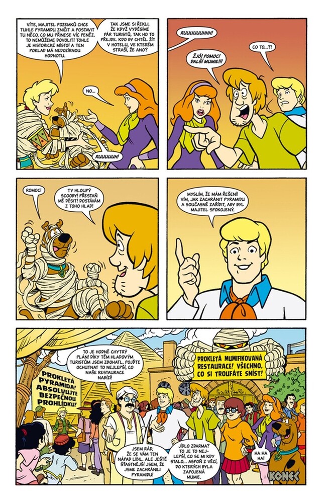 - Můj první komiks: Scooby-Doo, kde jsi?: Hodný, zlý a strašlivý Záhady s.r.o. vyráží do akce a žádný přízrak si před nimi nemůže být jistý! V téhle nadupané knížce se pustí hned do osmi velkých případů, které prověří Velminy znalosti, Fredovu vynalézavost, Daphneinu ráznost… a zbabělost i apetit Scoobyho a Shaggyho! Dojde na postrach westernového městečka, nebezpečnou mumii, petardový přízrak, staré hrady, prokleté talismany, kouzelnická vystoupení a hororový con (samozřejmě s jedním duchem navíc)! Scooby Dooby Doo!