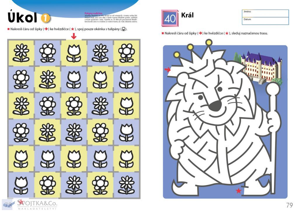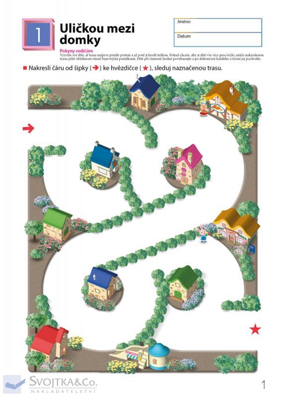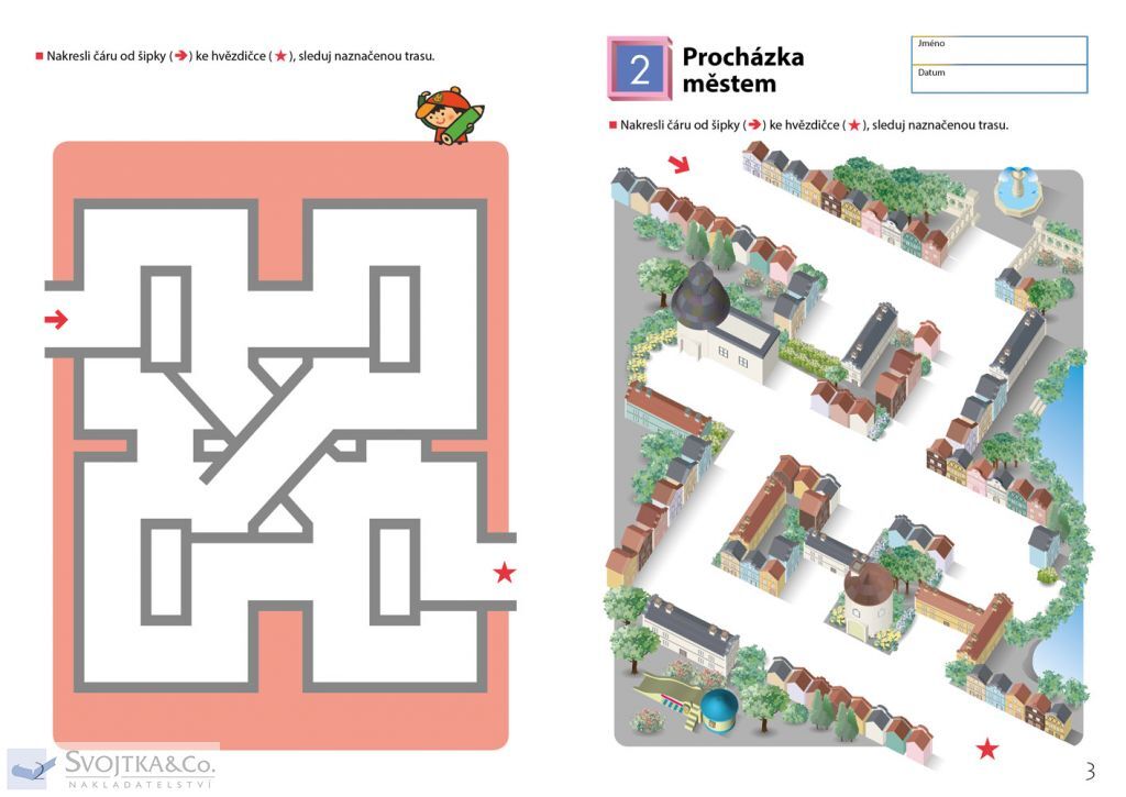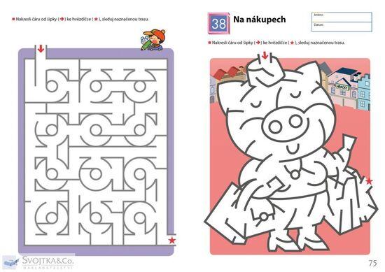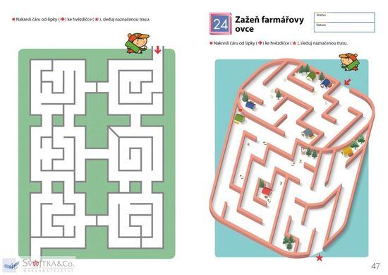 Pokud již vaše dítě úspěšně zvládlo pracovní sešit Snadná bludiště, tento sešit na něj navazuje. Pracovní sešit Bludiště poskytuje vašemu dítěti příležitost rozvíjet schopnost ovládat tužku při kreslení cesty bludištěm dle vyznačeného směru. Protože tento sešit obsahuje spoustu trojrozměrných vyobrazení, například měst, ulic a parků, budou cvičení pro dítě i příjemným prožitkem, jako kdyby opravdu procházelo bludištěm. Hledáním cesty bludištěm a jejím kreslením si dítě procvičuje dovednosti potřebné pro psaní písmen a číslic. Tato cvičení dítěti rovněž pomáhají osvojit si klíčovou studijní dovednost schopnost koncentrace.