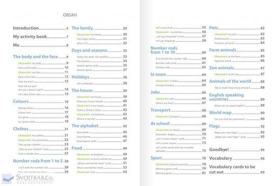 K tomu, aby si vaše dítě snáze osvojilo angličtinu, vám v tomto pracovním sešitu nabízíme karty se slovní zásobou. Aktivity a karty jsou s těmito tématy: rodina, oblečení, tělo, jídlo apod.