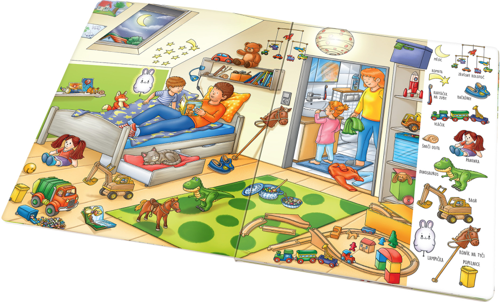 Tuhle knížku lze díky praktickému formátu na cesty vzít všude s sebou! V krásných barevných obrázcích mohou „číst“ i ti, kdo ještě neumějí písmenka. Zábavnou formou se tak seznámí se světem knih, budou se učit prvním slovům a rozvíjet základy předčtenářských dovedností.