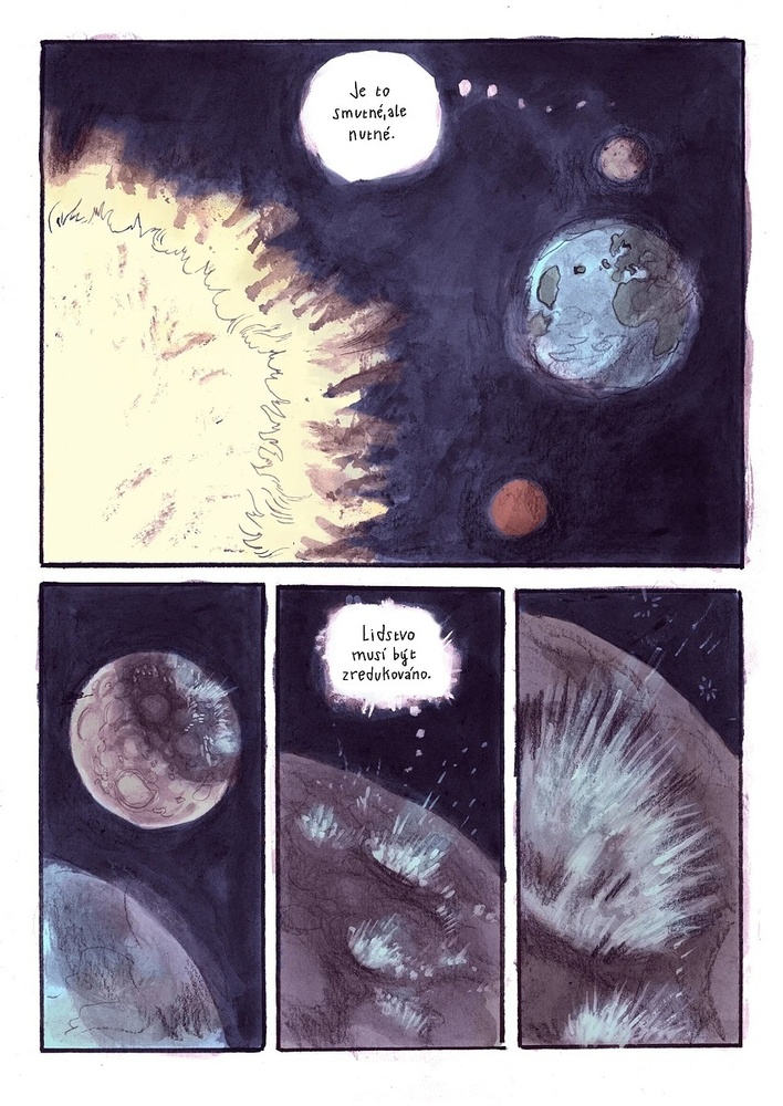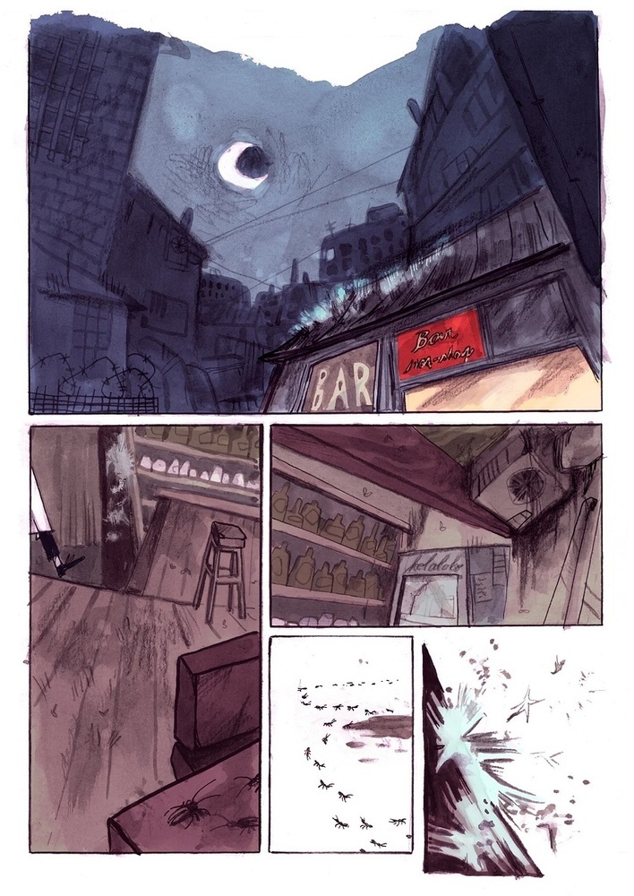 Noční bar a v něm dvě postavy. Na jedné straně barového pultu člověk snažící se svou sebelítost utopit v alkoholu, na straně druhé barman, který už ztratil víru v lidstvo. Kam je zavede jejich rozhovor? A co se skrývá na odvrácené straně Měsíce? Komiks původně vznikl pro inovativní veletrh ...