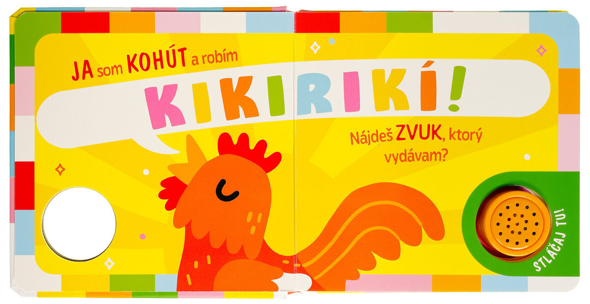 V tejto veselo ilustrovanej knihe budeš hľadať konkrétny zvuk zvieraťa na farme. Poznáš napríklad kohúta? A vieš, ktorý zvuk vydáva? Ovca bečí, krava bučí, ale čo napríklad taký kôň? Alebo káčer? Stláčaj tlačidlo tak dlho, kým nenájdeš správny zvuk! Po vytiahnutí brzdy batérie (izolačného prúžku) sa zvukové tlačidlo už nedá vypnúť. Zvuky teda hrajú vždy, keď sa stlačí tlačidlo. Táto zábavná kniha so zvieratami z farmy malé deti iste poučí, ale rozhodne aj zabaví.
