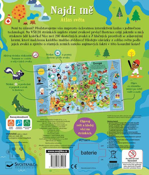 Objevujte na stránkách této úžasné zvukové knížky přes 200 zvuků z celého světa! Celý svět na stránkách doslova ožije, jakmile u ilustrací stisknete vyznačené místo. Tato kniha obsahuje jak skutečné zvukové prvky, tak i namluvené názvy míst, zvířat, památek či přírodních úkazů. Kniha je tedy pro malé děti tak zajímává a interaktivní, že nepotřebují ani žádného dospěláka, který by jim názvy musel předčítat! V knize se dozvíte i mnoho zajímavých informací o různých místech, zvířatech, kultuře, a dokonce přes 70 obrázků můžete hledat v režimu "hry". Tak na nic nečekejte, pojďte se seznámit s celým světem a objevujte, jaké zvuky na něm najdete.