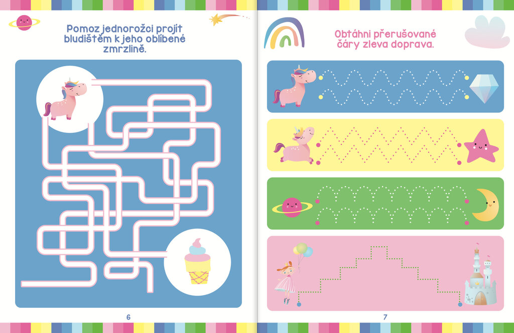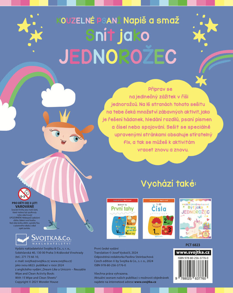 Vydejte se s dětmi do magického světa jednorožců s tímto kouzelným sešitem, který nabízí 16 stran plných zábavných a vzdělávacích aktivit, jež podpoří rozvoj psaní, počítání a logického myšlení. Speciálně upravené stránky umožňují opakované vyplňování díky stíratelnému fixu, takže se děti mohou k úkolům neustále vracet. Užijte si s jednorožci plno zábavy!