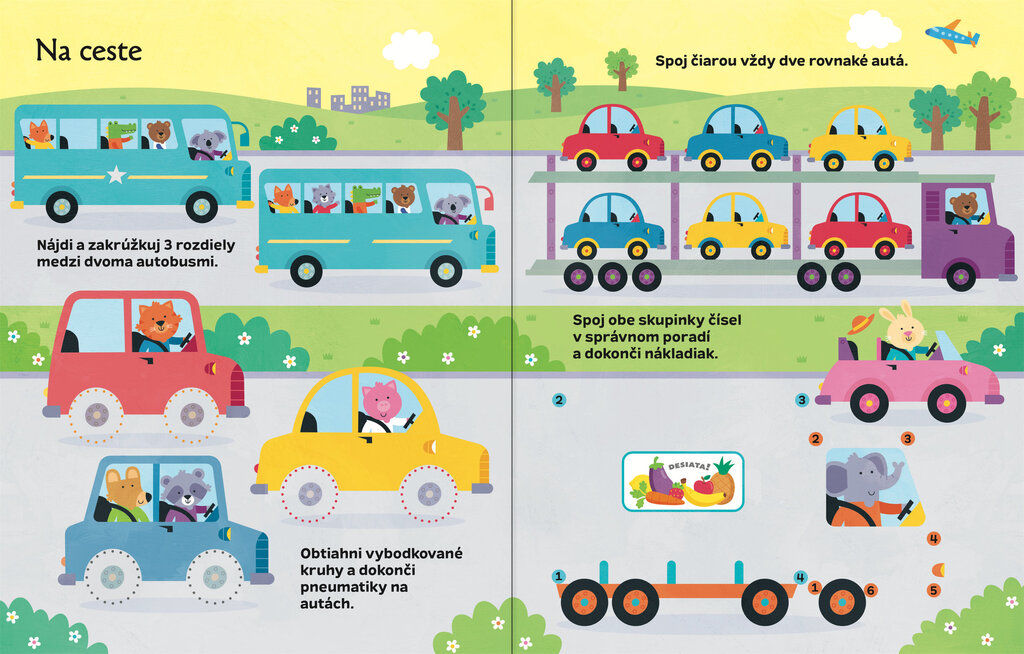 Vozidlá čakajú na to, že im pomôžeš vyriešiť úlohy. Hľadaj rozdiely medzi autobusmi, preveď bludiskom hasičské auto a doveď ho späť na stanicu, dokresli podvaly na koľajniciach pre vláčik a spočítaj okná na lodi. Pri plnení úloh budeš používať stierateľnú fixku, a tak sa môžeš k úlohám vracať znovu ...