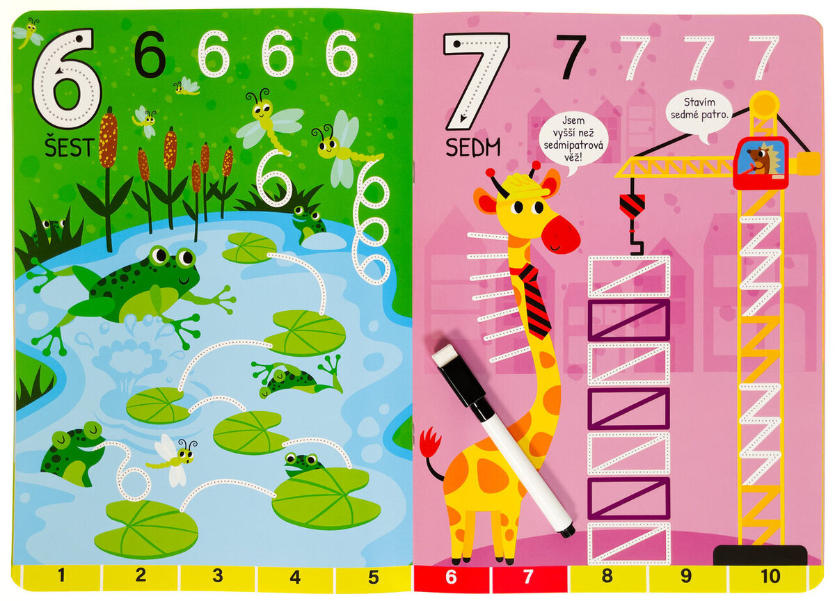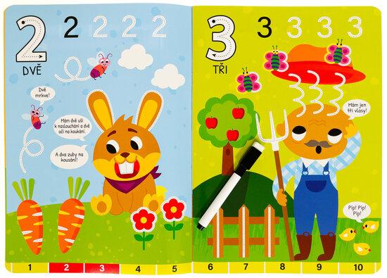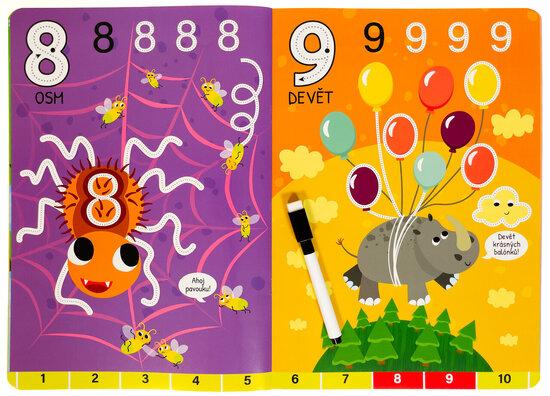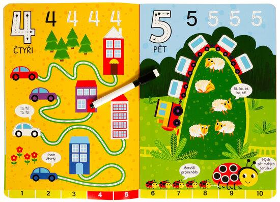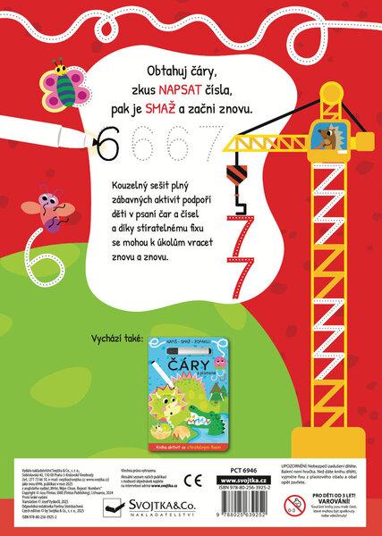 Obtahuj čáry, piš čísla, pak vše smaž a začni znovu. Hravé obrázky vybízejí k obtahování rovných, klikatých i zakřivených čar, které v sobě nápadně ukrývají i čísla. Sešit s pevnými lesklými stránkami je vhodný pro děti, které se učí první tahy i detailnější linky a psaní čísel a počítání. Nemusí se bát přetahovat a dělat chyby. Když se něco nepovede, jednoduše to smažou a díky stíratelnému fixu, který je součástí sešitu, se můžou k úkolům vracet znovu a znovu.
