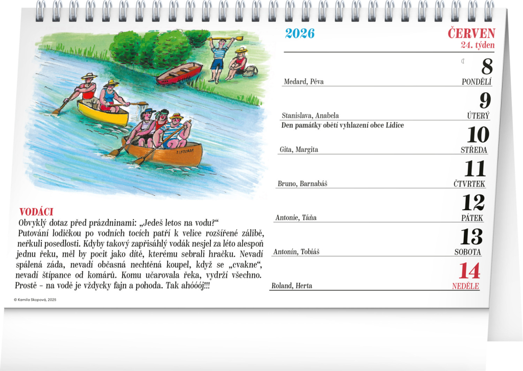 Kalendář vyrobený ve spolupráci Kamilou Skopovou, která vám každý týden na stránkách kalendáře představí naše světce a patrony a přiblíží jejich význam v životě českého lidu. Kalendárium obsahuje také svátky, památné dny, měsíční fáze a přehled na celý rok.