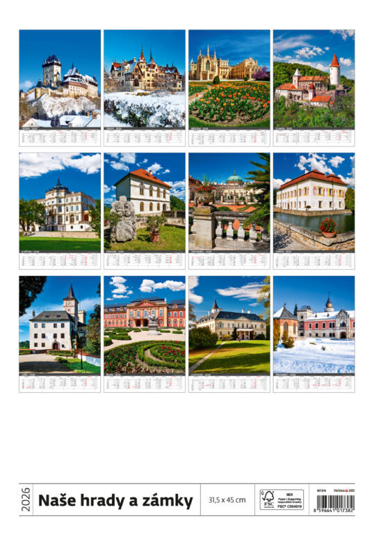 Naše hrady a zámky 2026 - nástěnný kalendář