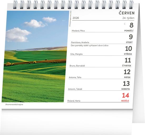 Objevte krásu krajiny z Čech, Moravy i Slezska prostřednictvím fotografií na každý týden. Stolní kalendář s českým kalendáriem obsahuje svátky a památné dny, měsíční fáze a přehled na celý rok.