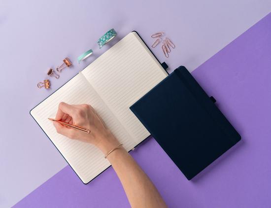 Linkovaný notes Balacron v tmavě modrém provedení. Povrch diáře si získal oblibu díky kvalitnímu svrchnímu materiálu, který je extrémně odolný vůči vnějšímu poškození.