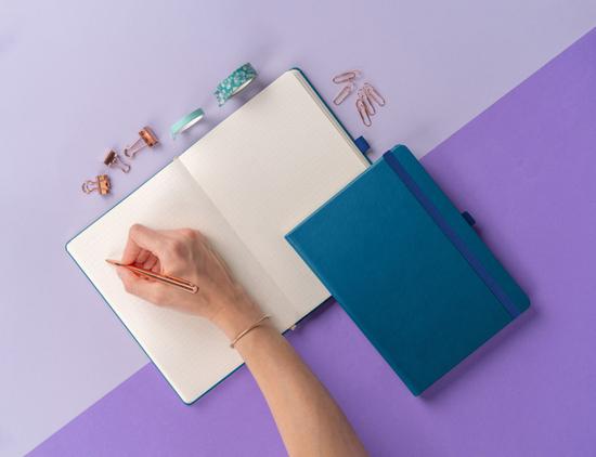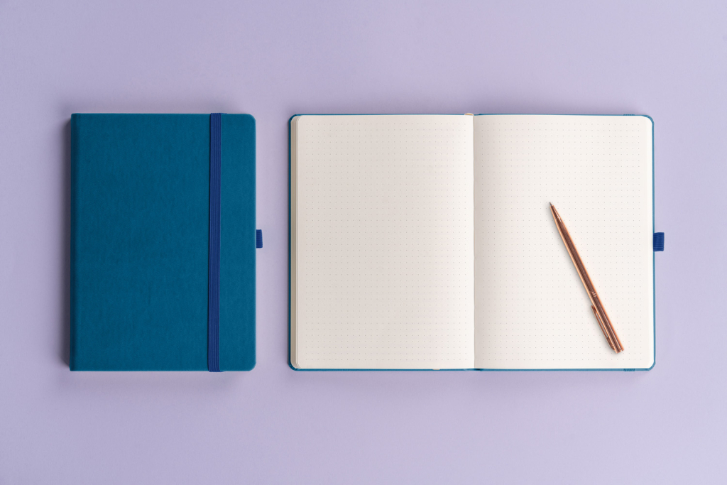 Klasický tečkovaný notes v modré barvě s klasickým a elegantním povrchem.