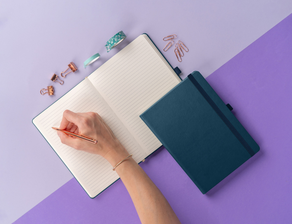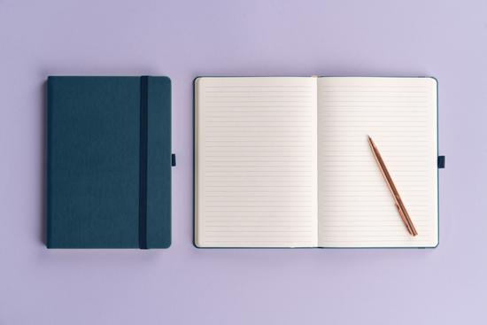 Klasický linkovaný notes v modré barvě s klasickým a elegantním povrchem.