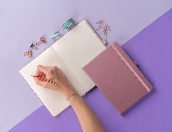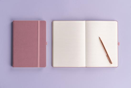 Klasický linkovaný notes v růžové barvě s klasickým a elegantním povrchem.
