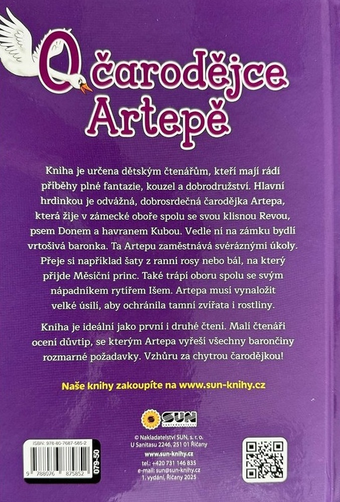 Kniha je určena dětským čtenářům, kteří mají rádi příběhy plné fantazie, kouzel a dobrodružství. Hlavní hrdinkou je odvážná, dobrosrdečná čarodějka Artepa, která žije v zámecké oboře spolu se svou klisnou Revou, psem Donem a havranem Kubou. Vedle ní na zámku bydlí vrtošivá baronka. Ta Artepu ...