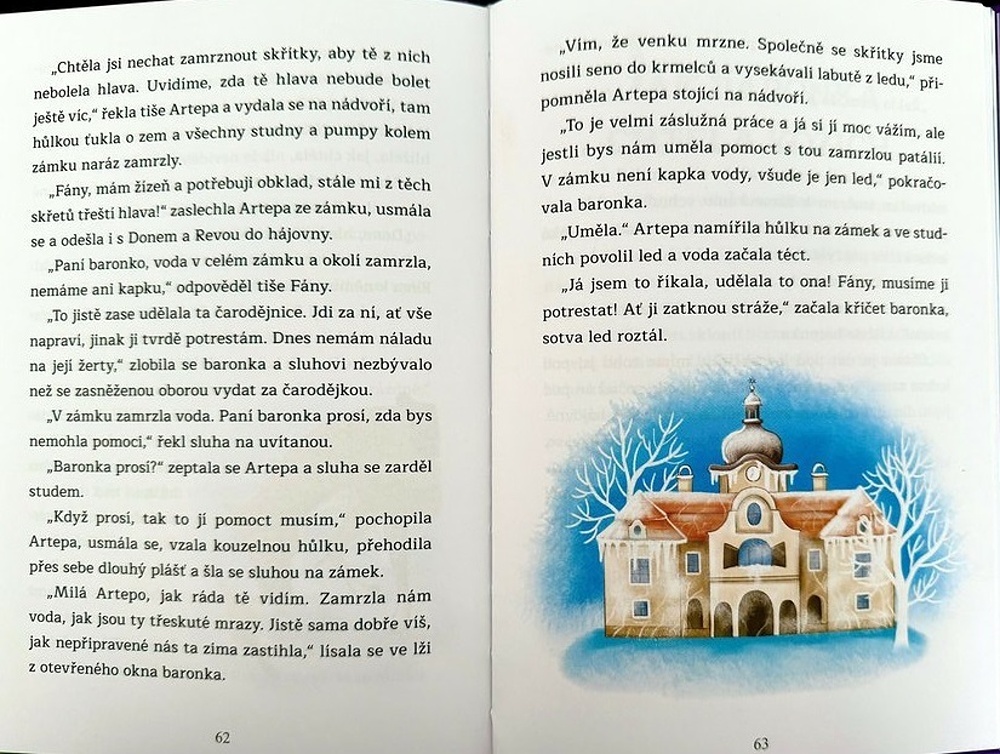 Kniha je ideální jako první i druhé čtení. Malí čtenáři ocení důvtip, se kterým Artepa vyřeší všechny barončiny rozmarné požadavky.