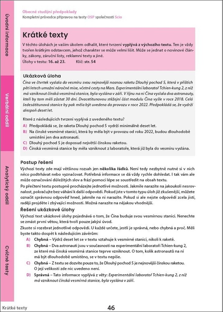 Učebnice tě připraví na Scio testy OSP! | Testové strategie a triky | Více než 600 řešených úloh | 5 testů s vyhodnocením | + Aplikace na trénování úloh (měsíční přístup) | + Online kurz OSP na Scio testy | Pro zpřístupnění nahraj doklad o koupi učebnice nebo fotku účtenky na https://oscio.cz/ucet/.