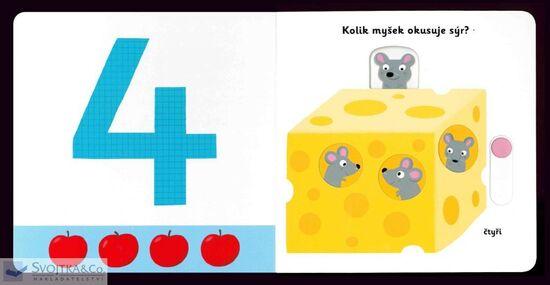 Kolik se vylíhlo kuřátek? Kolik myšek okusuje sýr? Kolik motýlků vyletí zpoza keře? Spočítej všechna zvířátka a nauč se čísla od jedné do pěti! Pestrobarevné ilustrace a posuvné prvky v tomto leporelu učí děti počítat zábavnou formou. Pohyblivé elementy v této knize rozvíjí jemnou motoriku dítěte a přispívají k živosti ilustrací.
