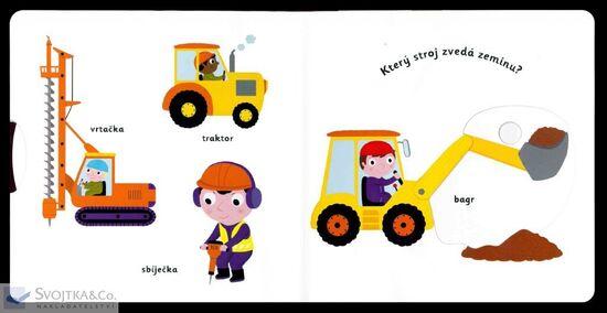 Který stroj nabírá do lžíce zeminu? Co se sype z míchačky? Jak je vysoký jeřáb? Pojmenuj vše, co se nachází na stavbě, a objevuj svět kolem sebe. Pestrobarevné ilustrace a posuvné prvky v tomto leporelu rozšiřují dětskou slovní zásobu zábavnou formou. Pohyblivé elementy v této knize rozvíjí jemnou motoriku dítěte a přispívají k živosti ilustrací.