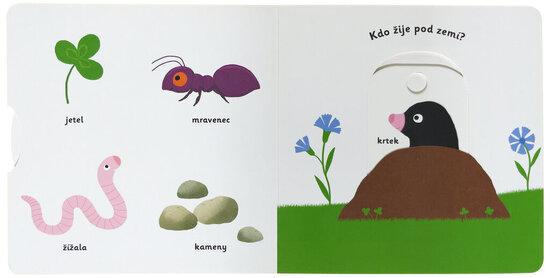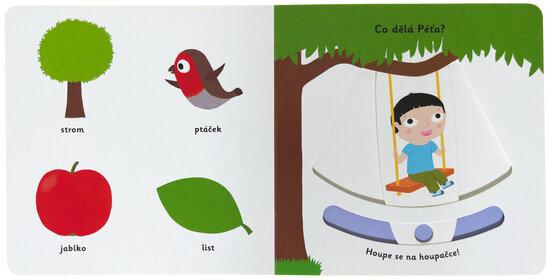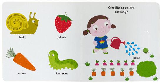 Objevovat, co všechno lze najít na zahrádce, je s tímto leporelem tak zábavné! Kdo létá z květu na květ? Kdo žije pod zemí? Čím Eliška zalévá rostliny? Co dělá Péťa na houpačce? Stačí jen vložit prstík do správného otvoru, lehce posunout nebo otočit ve směru šipky a hned bude váš malý objevitel nebo objevitelka znát odpovědi. Leporelo je určeno pro nejmenší děti od jednoho roku a má pevné stránky s posuvnými prvky, a tak si naši nejmenší mohou při prohlížení a pojmenovávání procvičit i jemnou motoriku. Knížka s prvky Montessori.