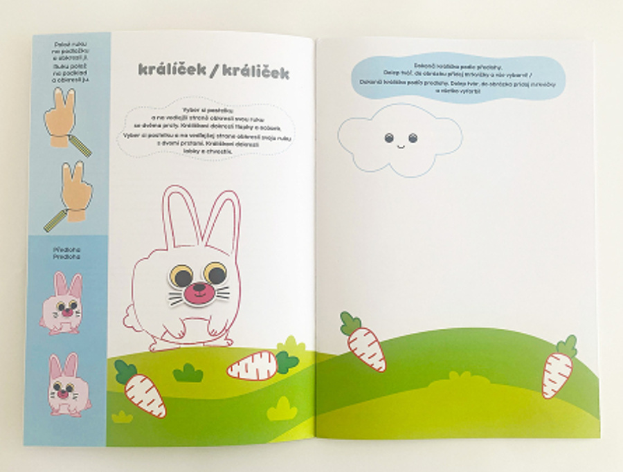 Vytvářej zvířátka obkreslováním tvarů ruky! Vytváraj zvieratká obkresľovaním tvarov ruky! Postupuj podle jednoduchých a názorných pokynů v zadání a své výtvory navíc zpestři spoustou samolepek! Uprostřed sešitu najdeš ozdobné rámečky. Do nich můžeš nakreslit svá oblíbená zvířátka a napsat jméno ...