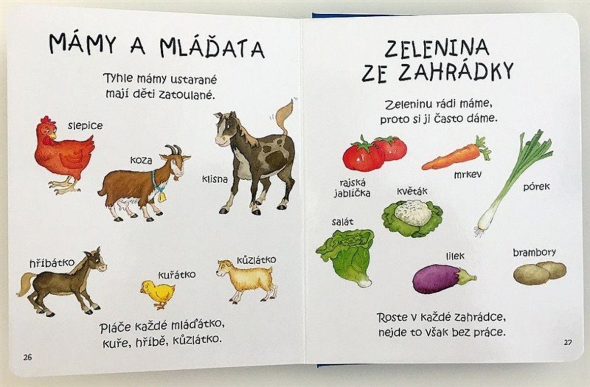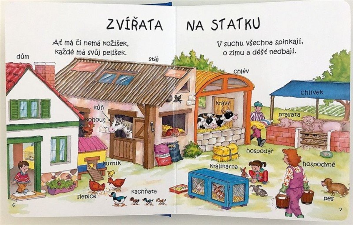 Na mnoha velmi pěkných obrázcích se děti seznámí s mnoha slůvky. Naučí se zvířátka. Pevné desky zaručí dlouhou životnost knihy i v ručkách těch nejnáruživějších malých čtenářů