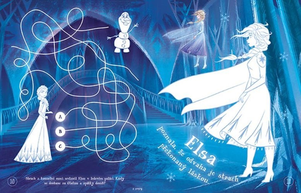 Omalovánky obsahují 24 barevných stran s obrázky a sadu kartonových samolepek, které ve tmě svítí a děti si s nimi mohou vyzdobit pokojíček. Lepící páska je součástí balení.