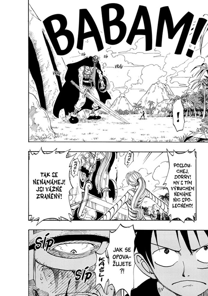 Agenti Baroka pronásledující naše hrdiny vstupují do souboje dvou hrdých válečníků, který zuří už sto let, a Luffy je vzteky bez sebe. Zoro s ostatními se ovšem chytí do jejich pasti! Dobrodružná plavba za Velkým pokladem pokračuje!