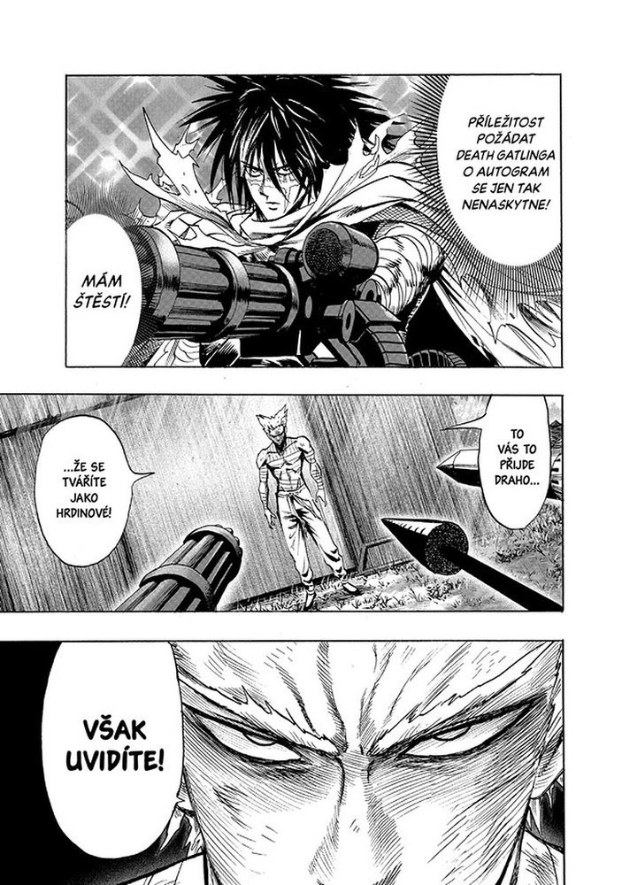 Když Garóa obklíčí hrdinové, ocitá se ve svízelné situaci. Ale díky své neuvěřitelné síle poráží hrdiny v přesile jednoho po druhém, dokud se na scéně neobjeví Genos. Mezitím Saitama zažívá maximální frustraci při jistém zápasu s Kingem...