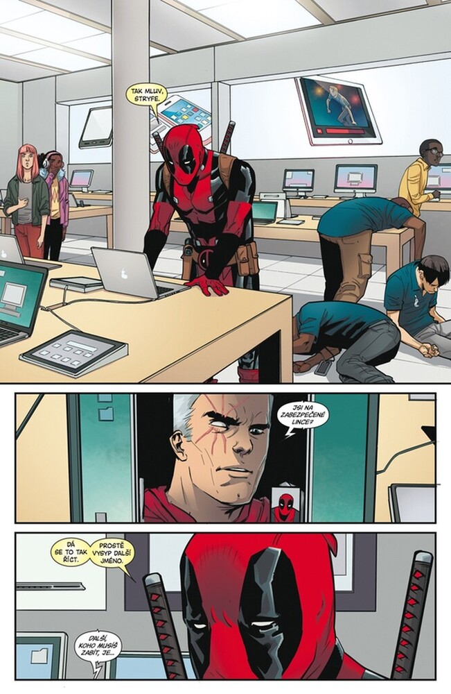 A HODLÁ TO VŠECHNO stihnout dřív než... se mu stane nějaká špatná věc trvalejšího rázu. Pomstít se „Stevu Zlogersovi“ z Hydry? Urovnat si to s Rogue? A nepotřebuje náhodou ještě zabít pár dalších lidí? Pak si to taky musí vyřídit s Madcapem a – počkat, Deadpool vážně sejme Apokalypsu?! Začíná to trochu připomínat seznam posledních přání. Jako by si Wade potřeboval všechno urovnat. Jen tak, pro jistotu. A jako bonus Deadpoolův příběh z minulosti, který doposud četli jenom obsedantní sběratelé alternativních obálek!