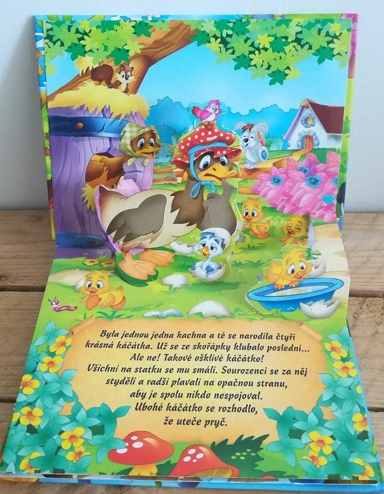Hledáte-li dokonalý dárek pro malé čtenáře, prostorová kniha Ošklivé káčátko je tou pravou volbou. Klasický příběh o káčátku a jeho cestě po statku zde ožívá díky úžasným 3D ilustracím, které vystupují z každé stránky a vtáhnou děti přímo do děje. Každé otočení stránky přináší nové překvapení – jak se káčátko seznamuje se zvířátky, jak ho pejsek a kočka honili po dvoře, zkrátka napětí i zábava graduje až do šťastného konce.